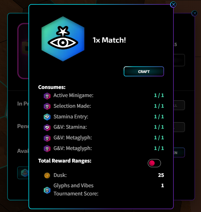 Glyphs & Vibes or G\&V is a minigame included within the Bazaar. To start the minigame, run the task "**Play Glyphs & Vibes".**