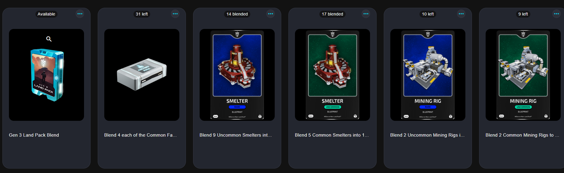To start blending assets, go to <https://neftyblocks.com/c/onmars/blends> and click on one of the blends that you are interested in.&#x20;